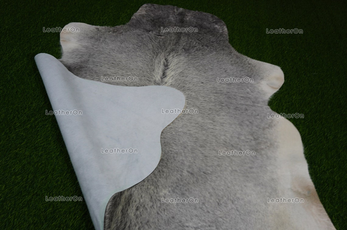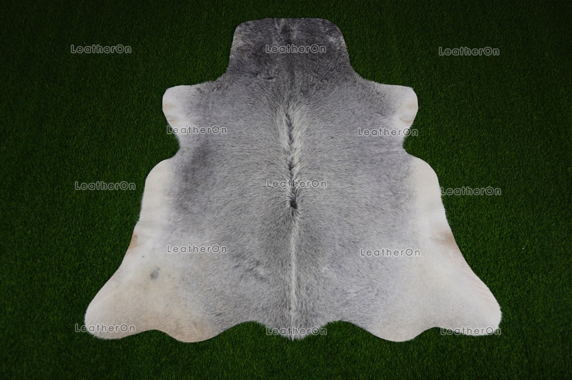 Gray White Small (4.5 X 4.5 ft.) Exact As Photo Cowhide Rug | 100% Natural Cowhide Area Rug | Real Hair-on Leather Cowhide Rug | C867