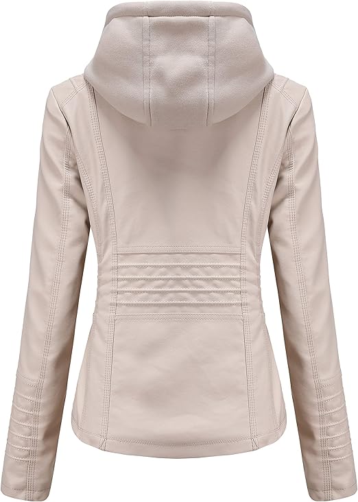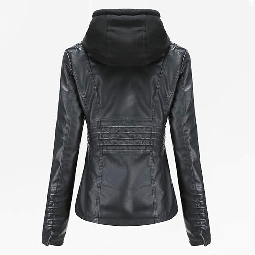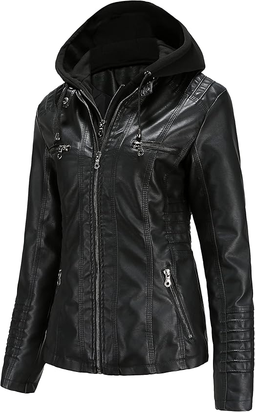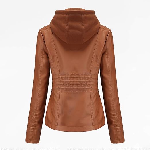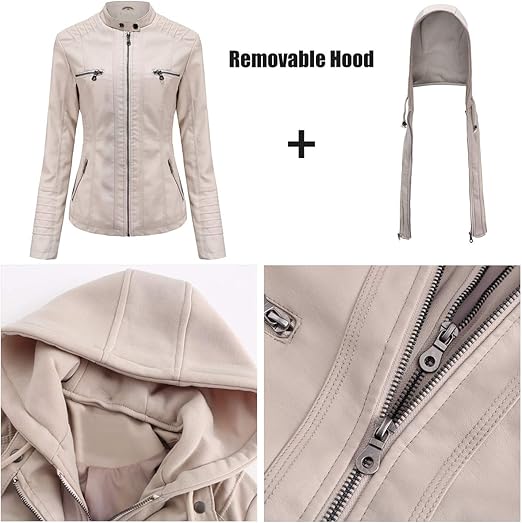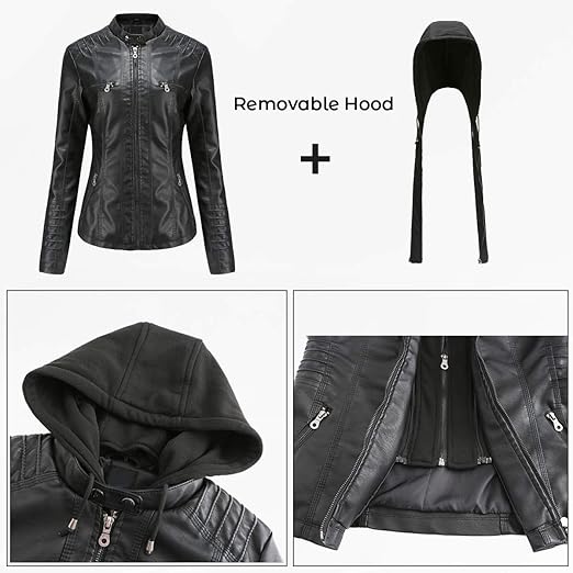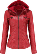Detachable Hood Women's Real Leather Jacket - Classic Biker Style, Moto Chic Design