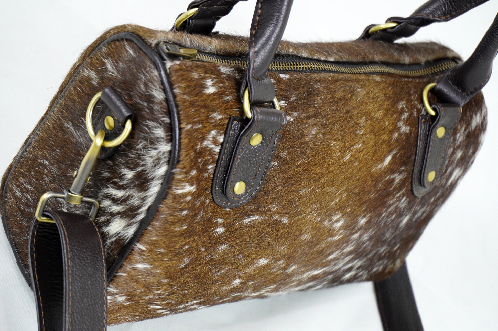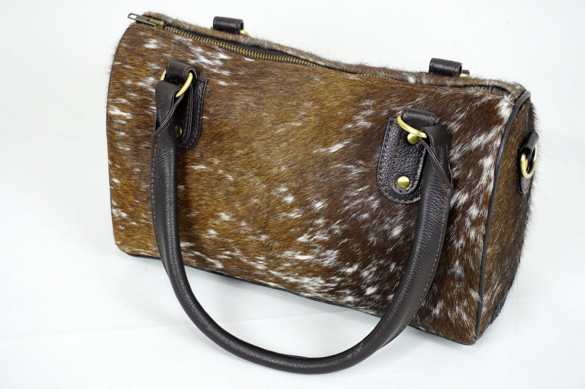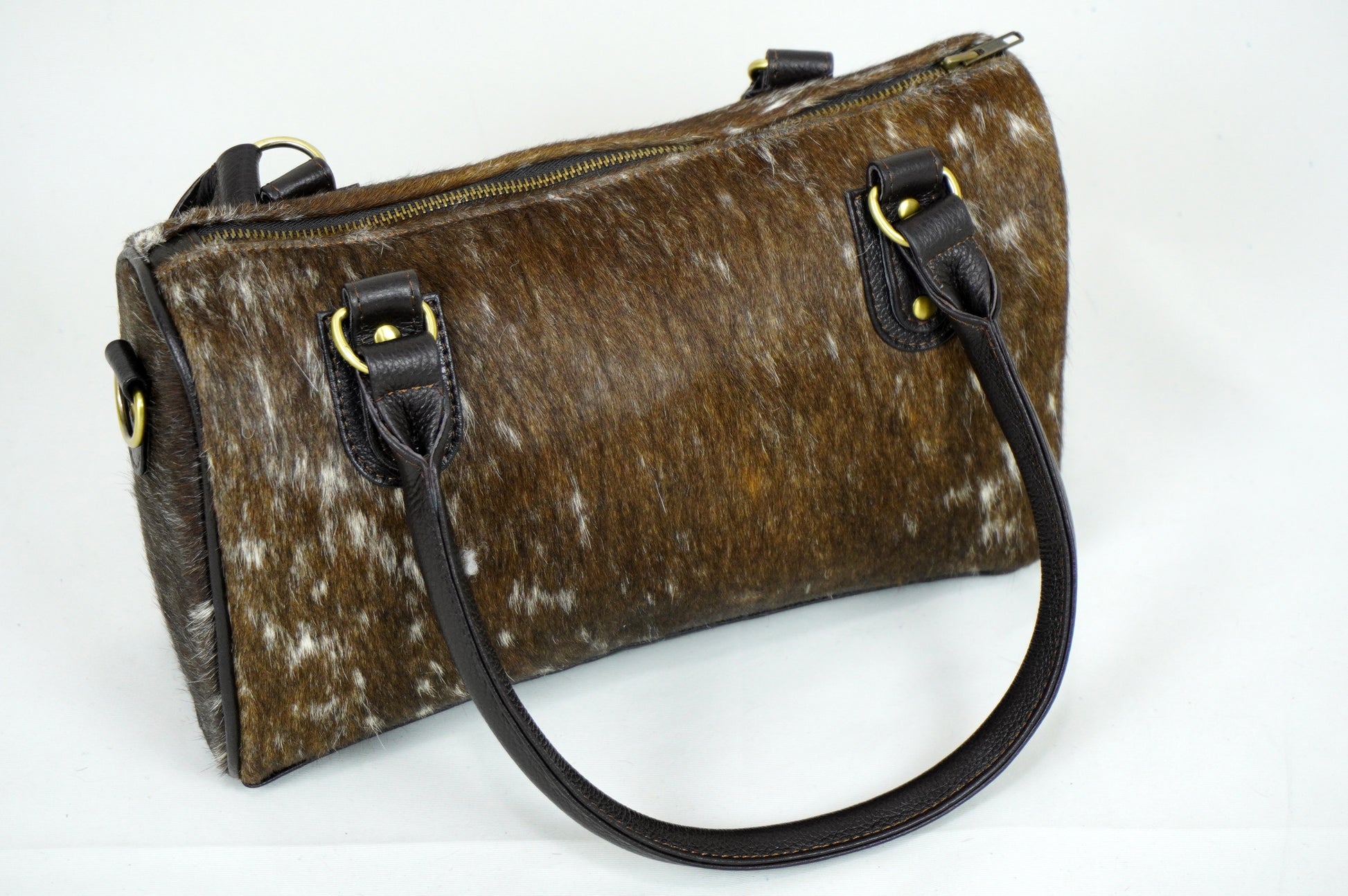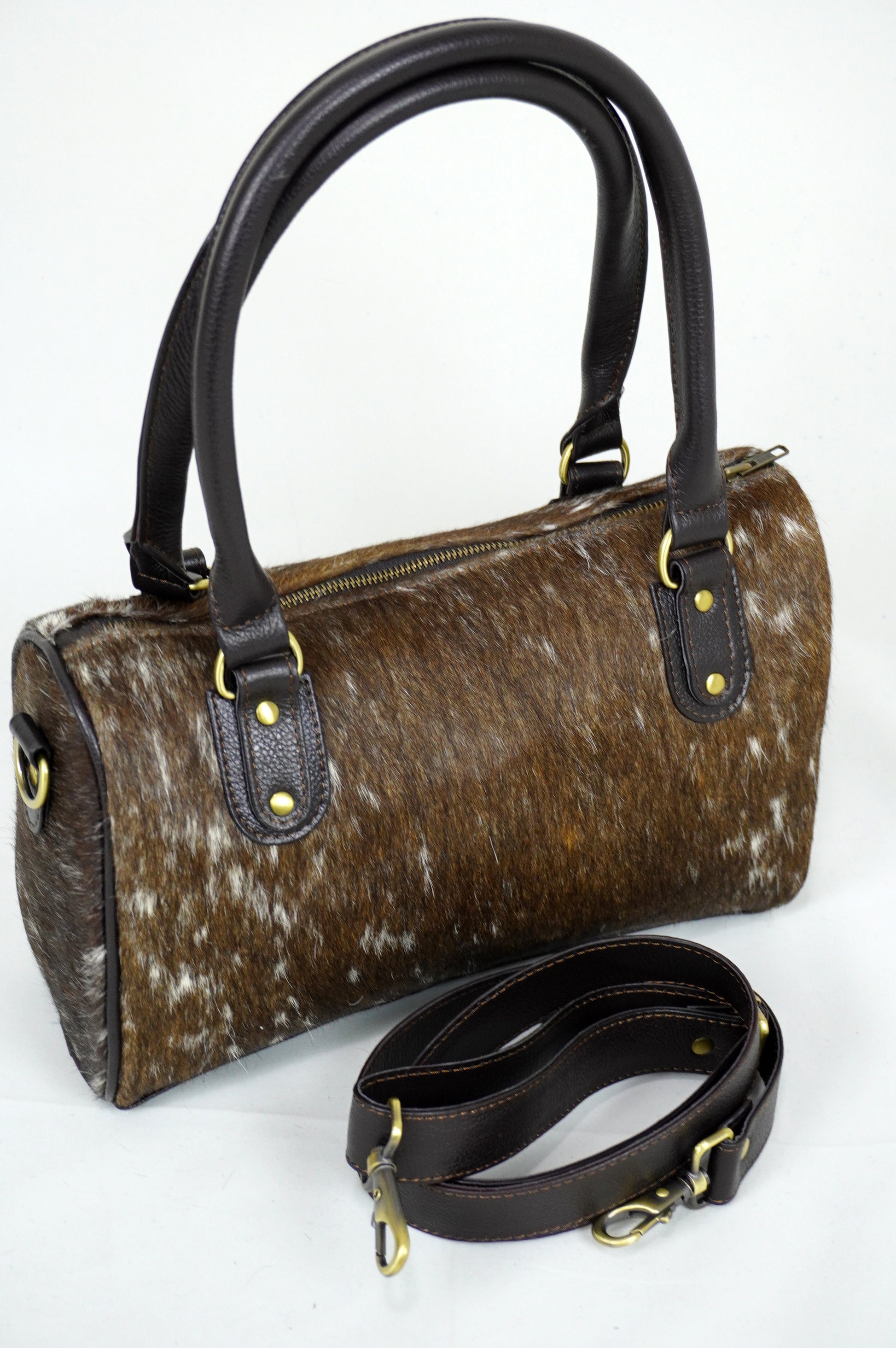 GENUINE Cowhide Barrel Bag | Real Cow Skin Shoulder Bag | Hair on Leather Hand Bag