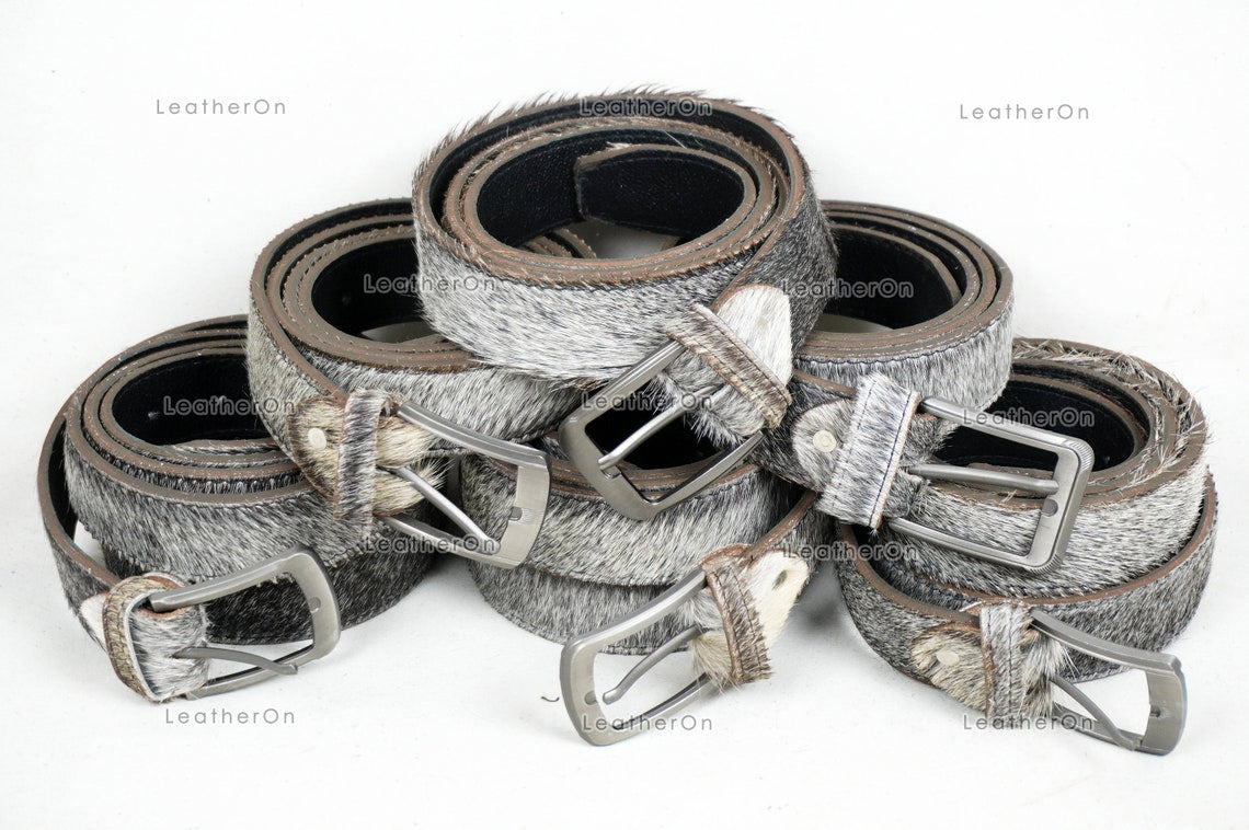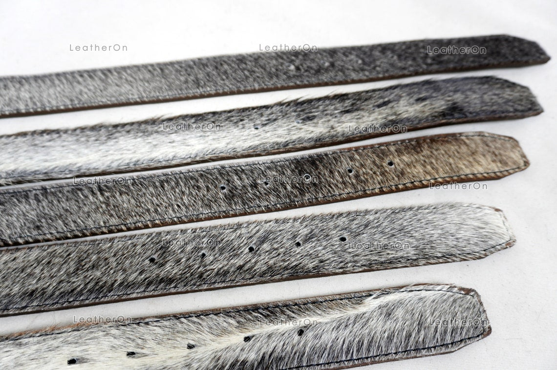 Genuine COWHIDE BELTS with Full Grain Leather Backside | Unisex 100% Natural Cow hide Belts | REAL Hair on Leather Belts | BLT11
