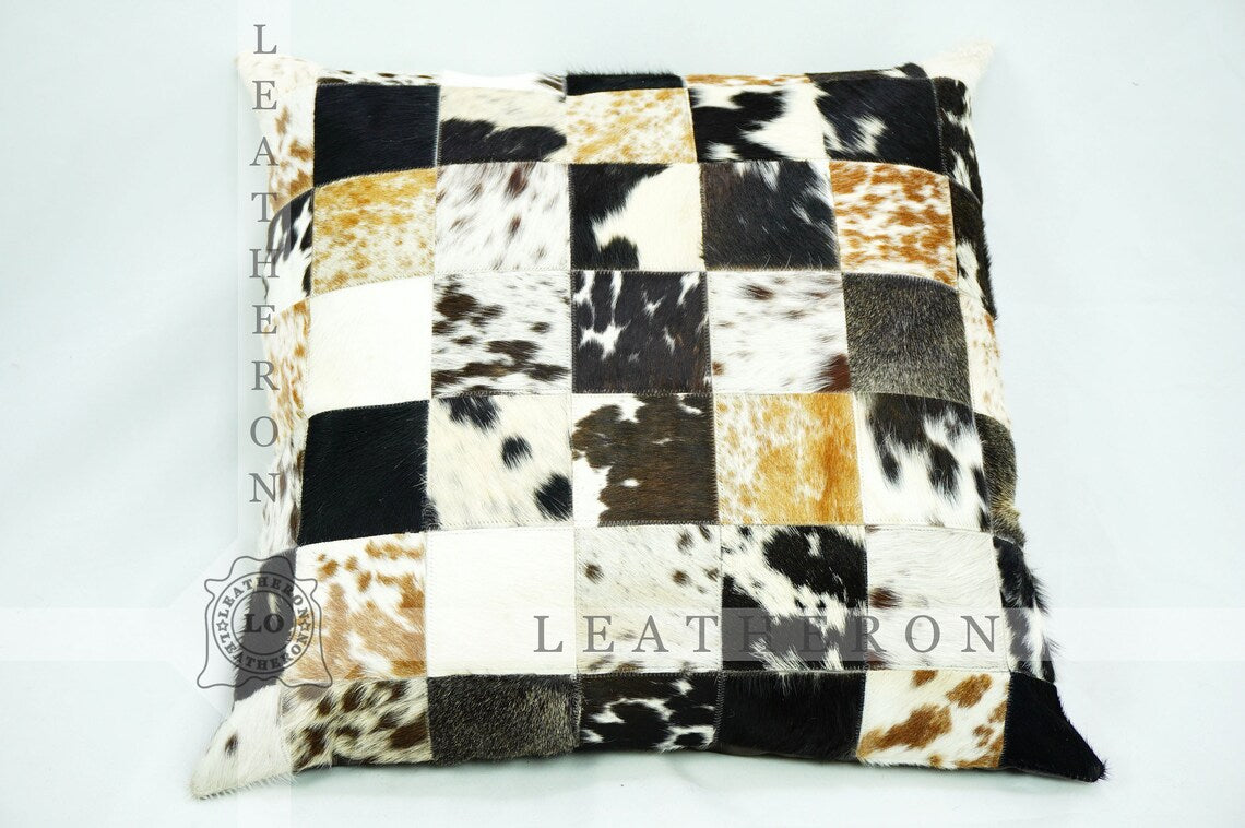 Genuine Cowhide Pillow Covers Natural Hair on Leather Cushion Covers Real Cowhide Pillow Cases | PLW 207