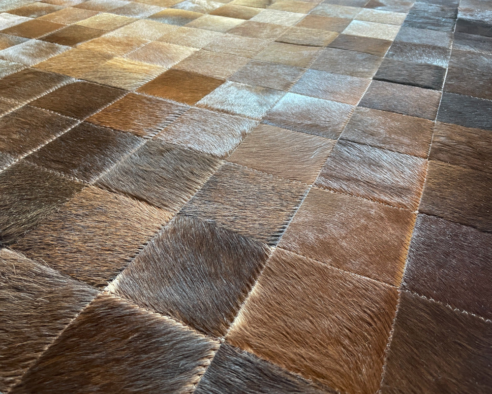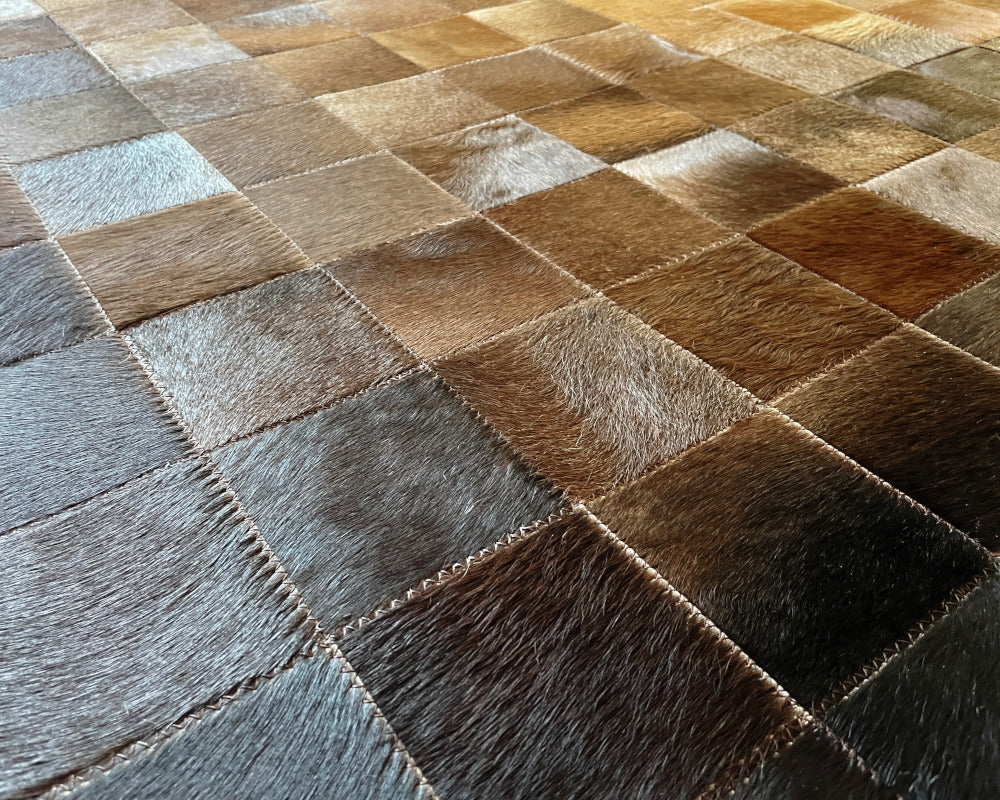 Expertly handcrafted from the premium Cowhides, these Cowhide Rugs are skillfully sewn together. These patchwork rugs present an eye-catching geometric version of the traditional cowhide. Each cowhide area rug is made up of a combination of spectacular color tones, making it ideal for any room.