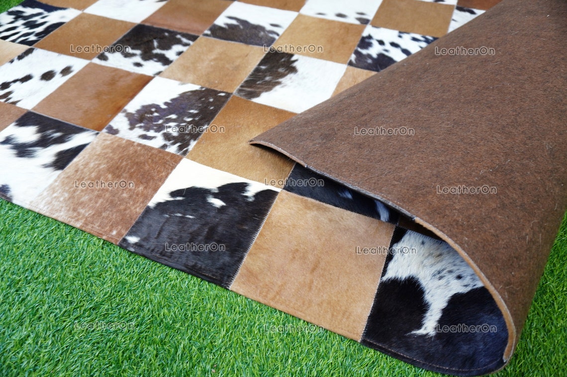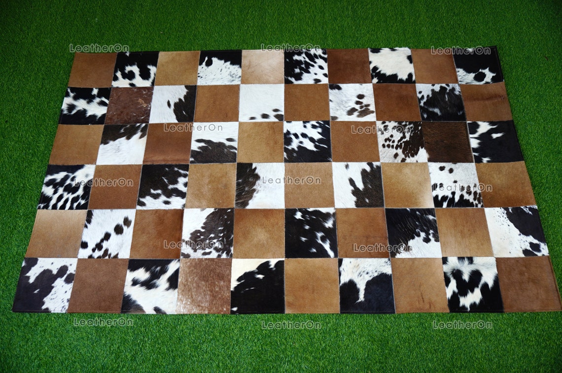 HANDMADE 100% Natural COWHIDE RUG (4 X 6 ft.) | Patchwork Hair on Cowhide Leather Area Rug | Exact as Photo | PR152