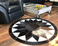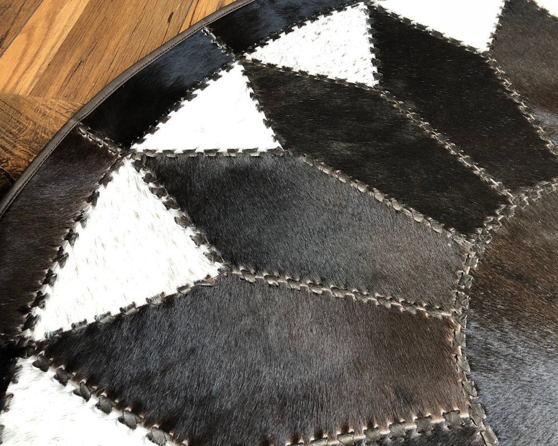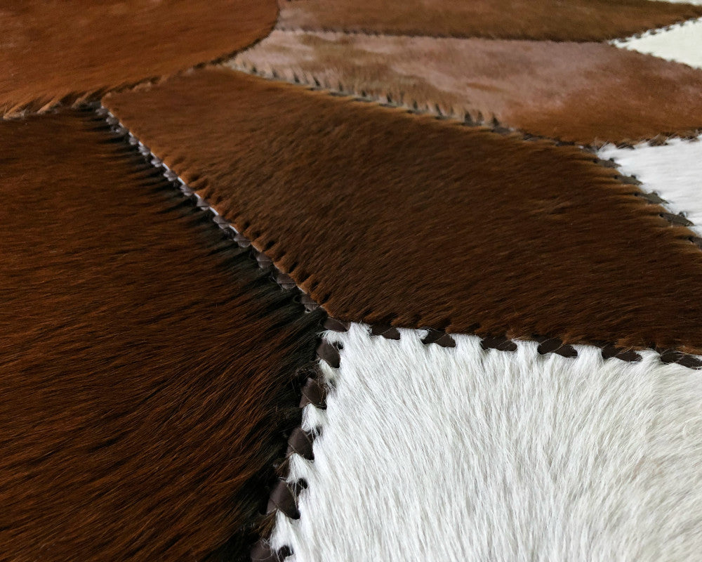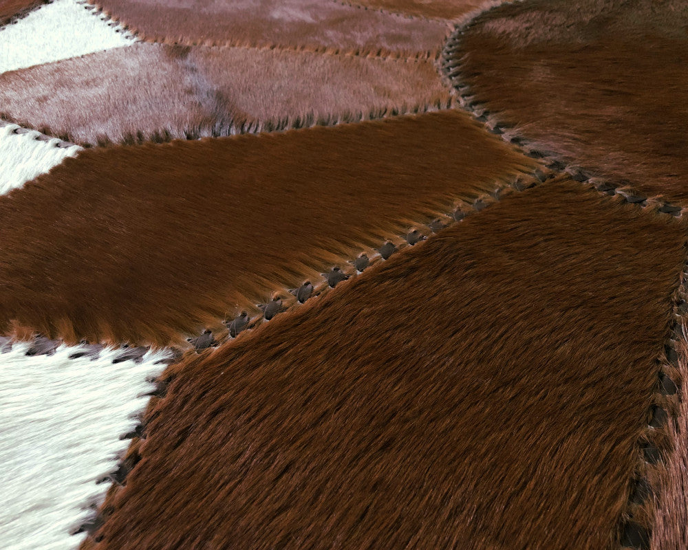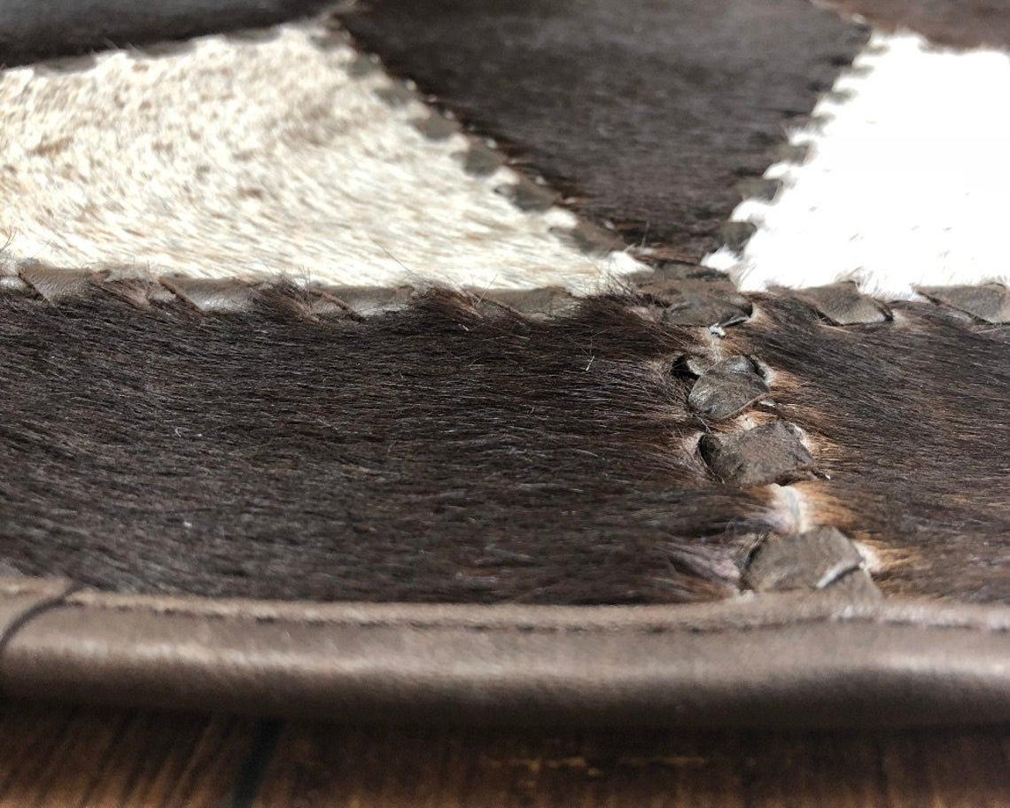 Luxurious Hair-On Cowhide Patchwork Area Carpet, Handcrafted Excellence | Hair on Leather Carpet with Leather Braided Work | PR105