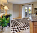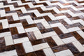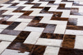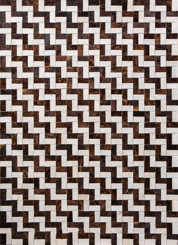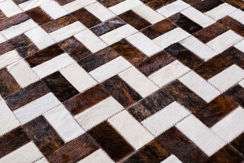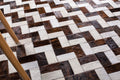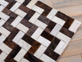 Brown White Zigzag Stair Style HANDMADE Indoor RUG | Patchwork Cowhide Area Rug | Hallway Runner | Leather Carpet | PR191