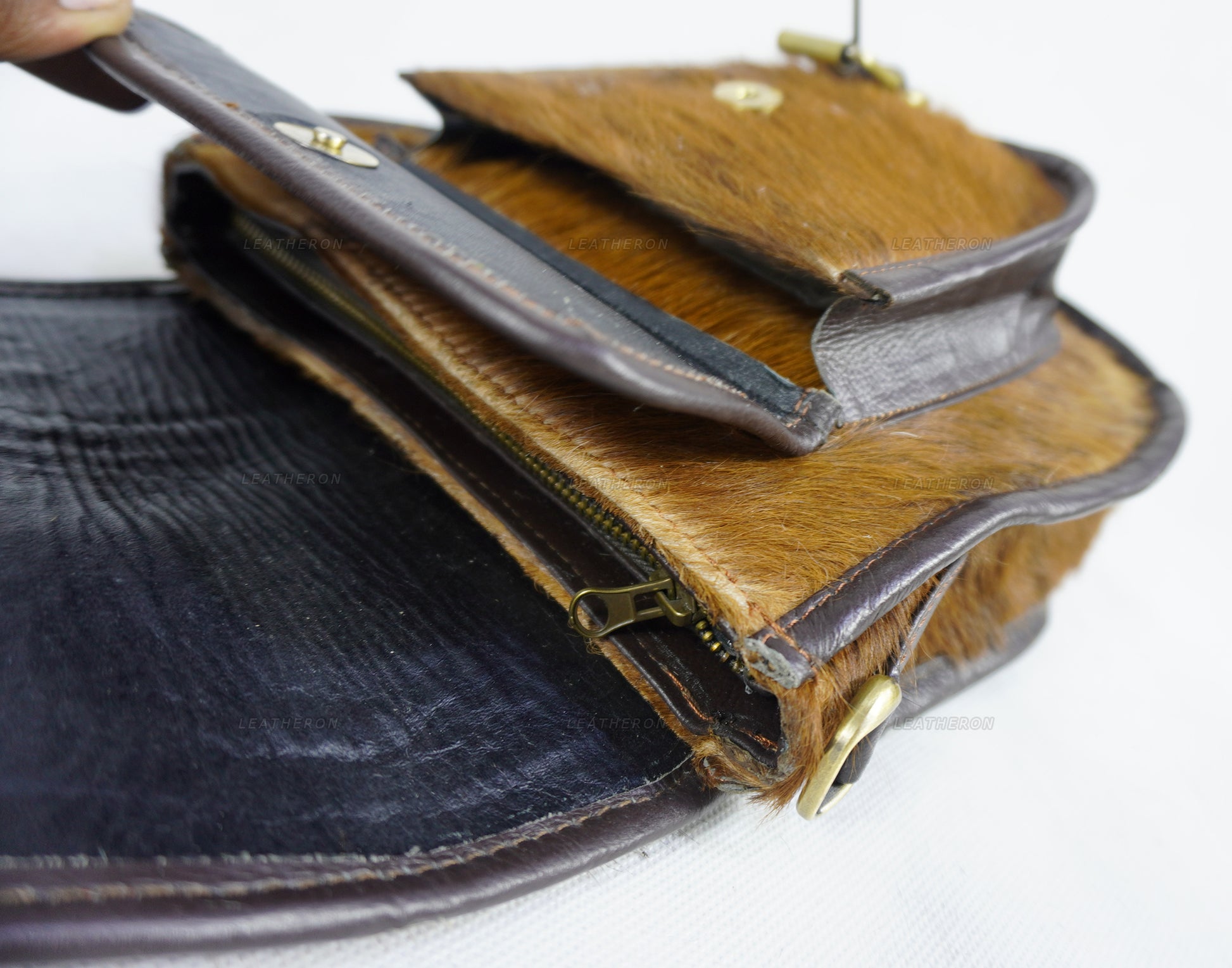 1. Genuine Cowhide Leather: Premium quality hair on cowhide with full-grain leather ensures strength and longevity.