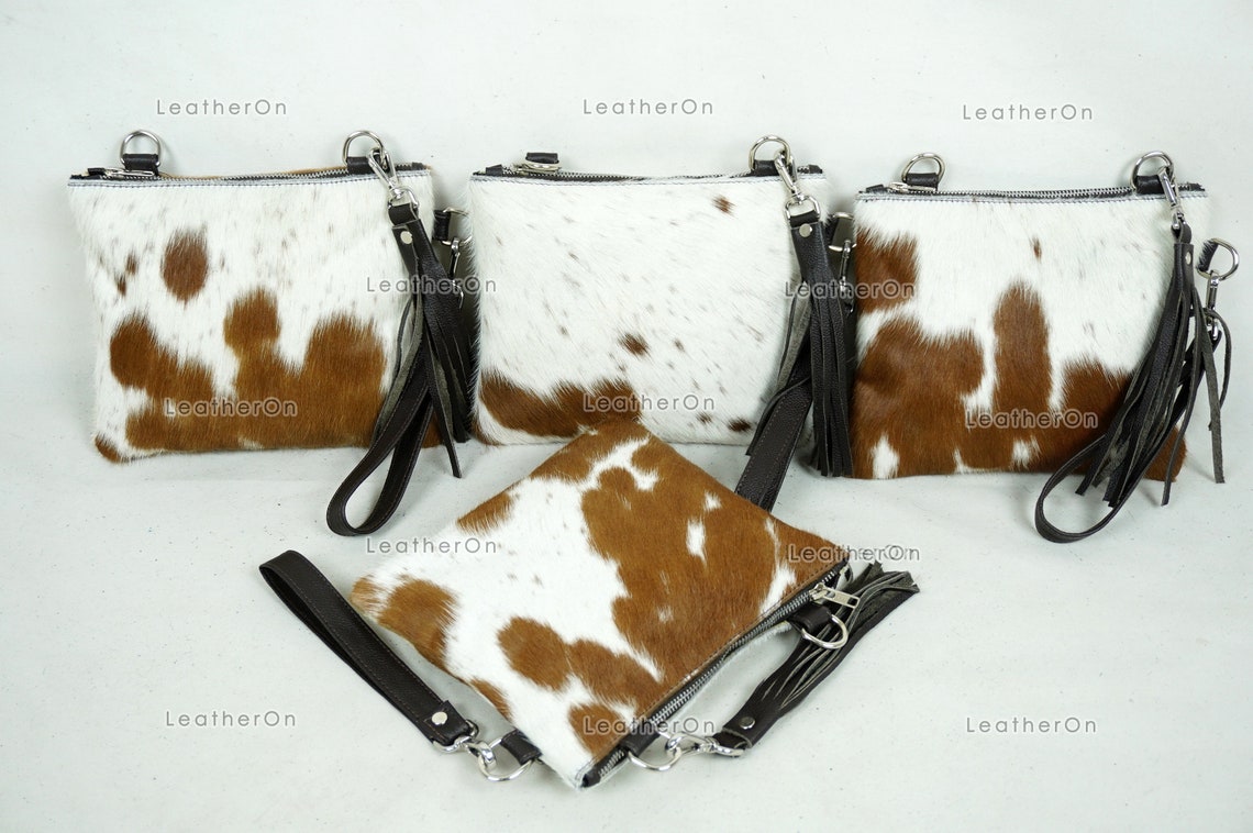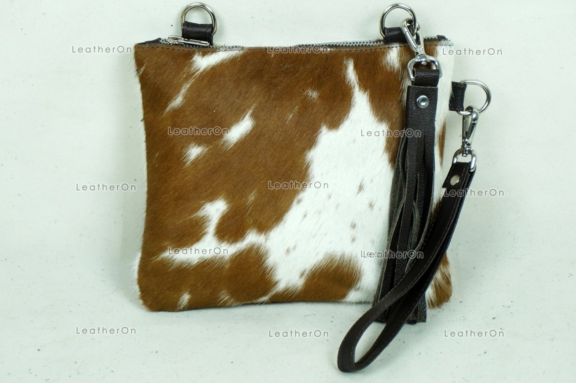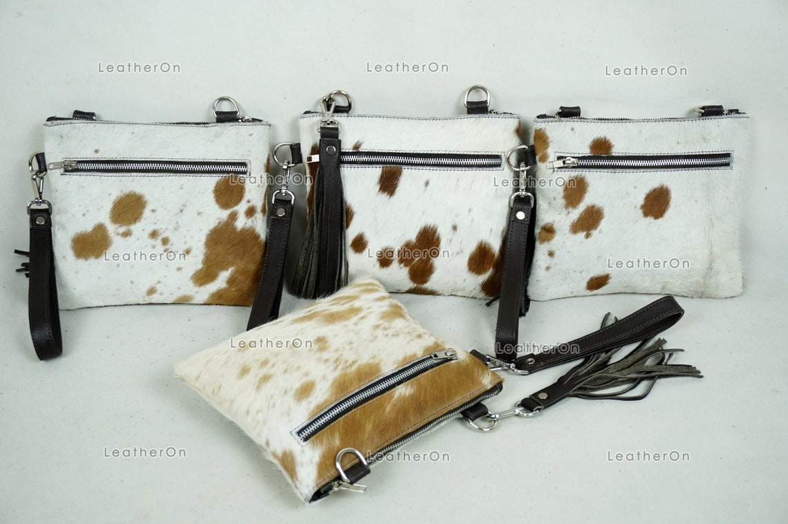 Natural Cowhide Cross body Bags with Strap | 100% Real Hair On Cowhide Leather Wristlet Bags | Genuine Cow skin Ladies Handbags | CB3