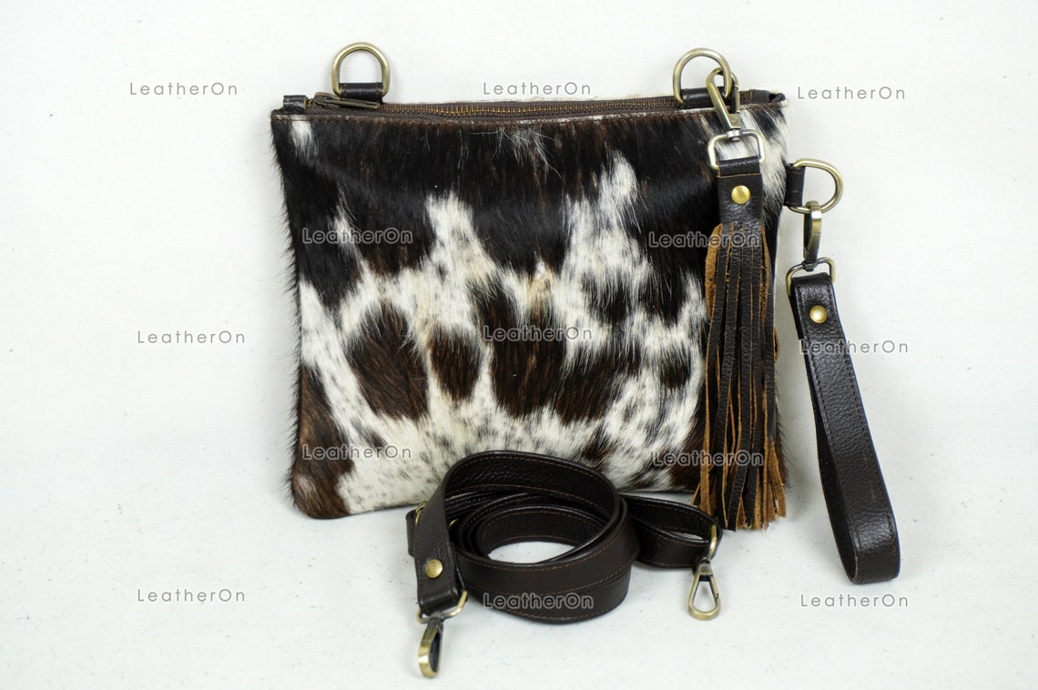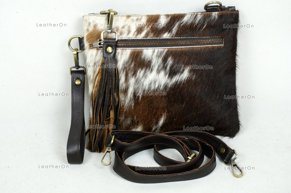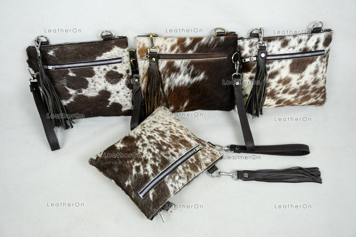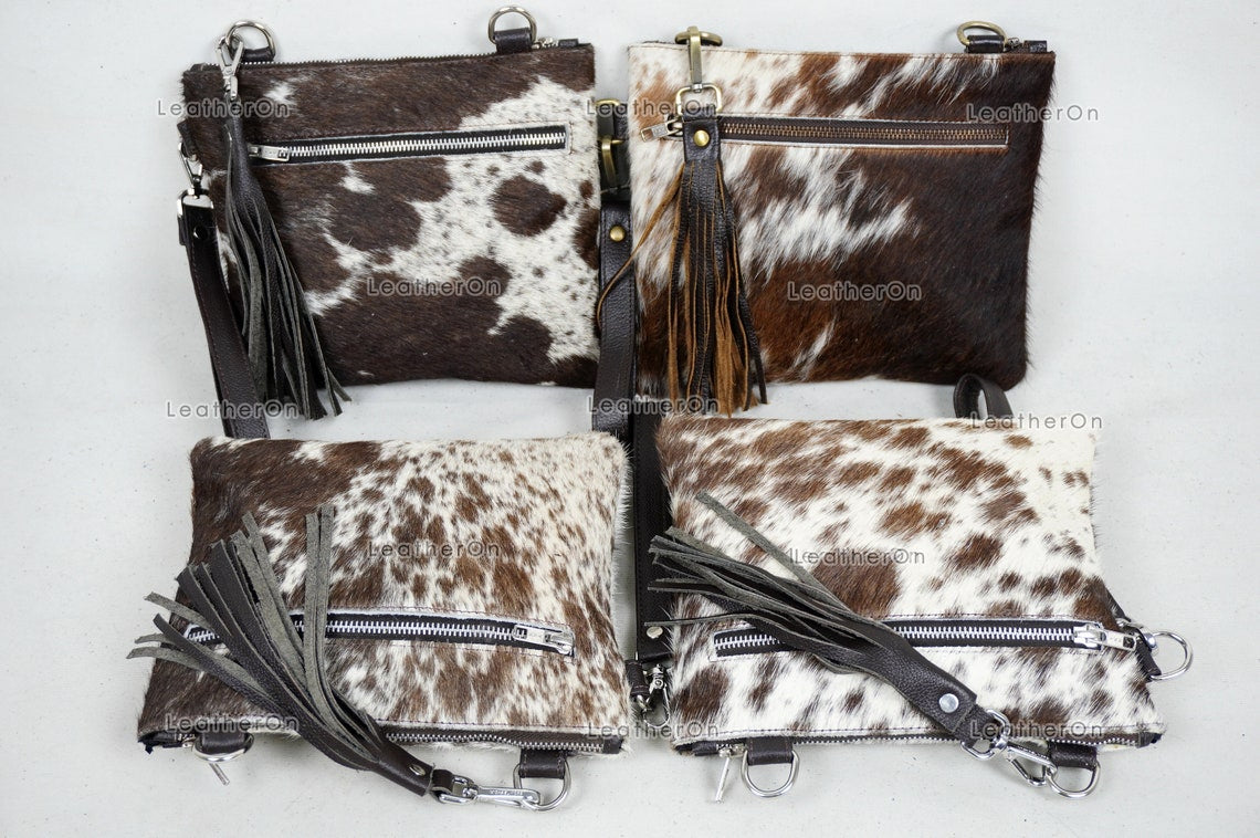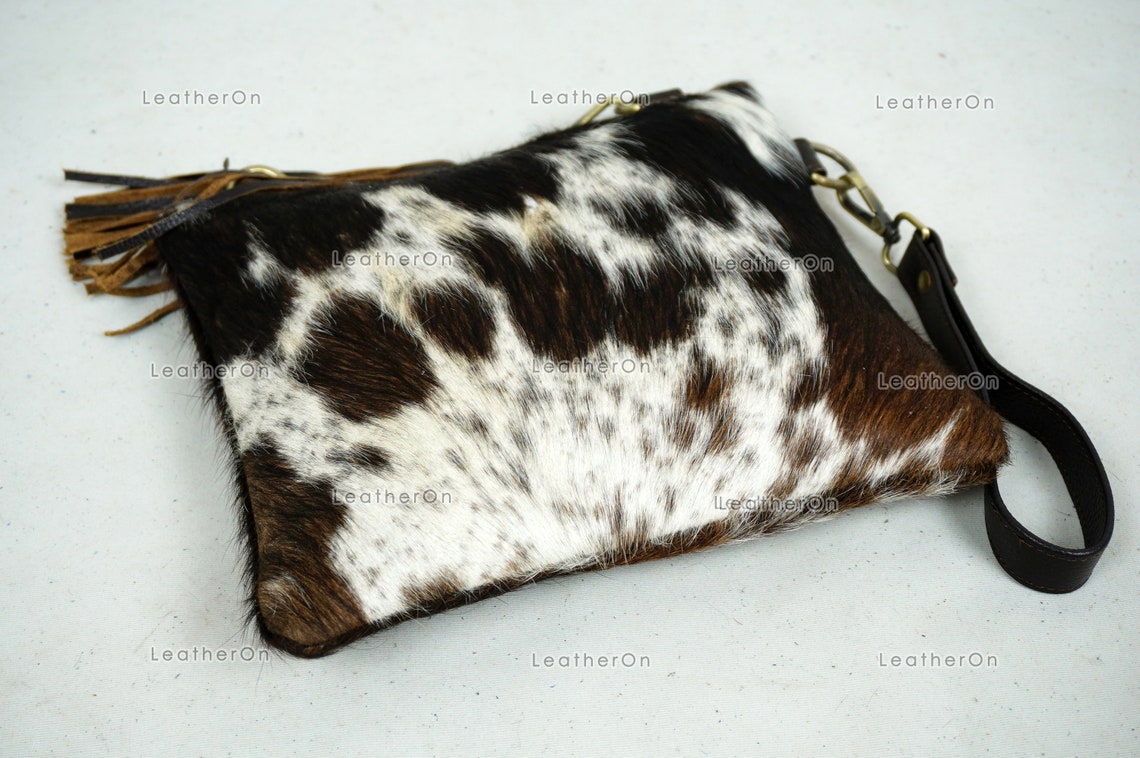 Natural Cowhide Cross body Bags with Strap | 100% Real Hair On Cowhide Leather Wristlet Bags | Genuine Cow skin Ladies Handbags | CB5