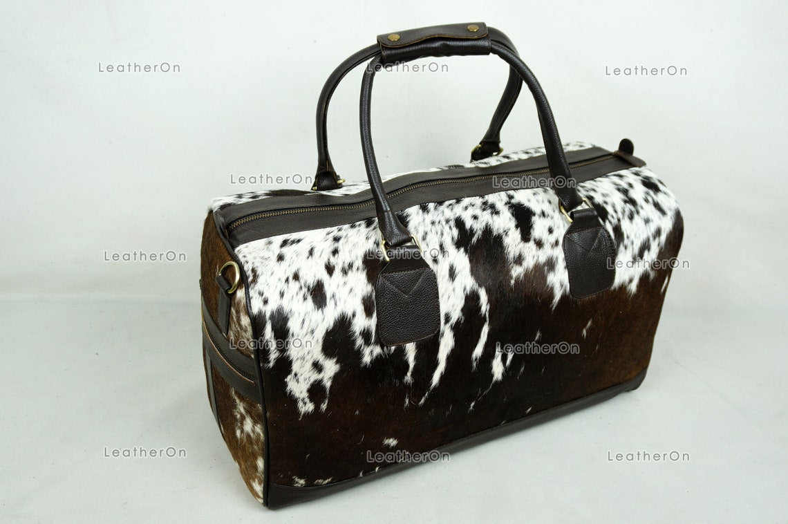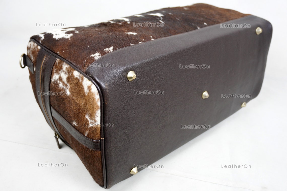 Natural Cowhide Duffel Bag Hair On Leather TRAVEL Bag Real Cowhide Luggage Bag Original Cow Skin Duffel Bag | DB62