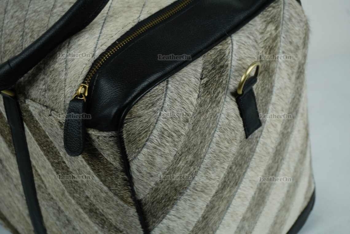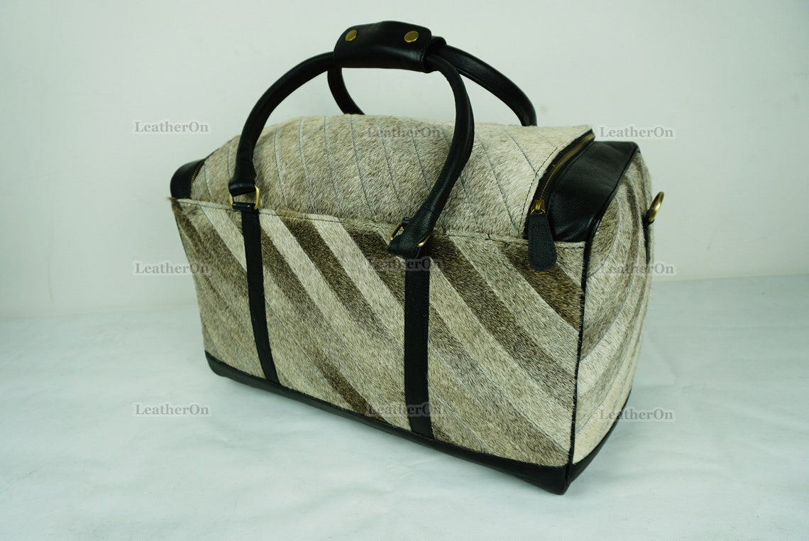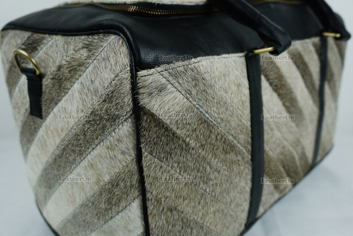 Large Duffel Bag!! Cowhide Patchwork Duffel Bag | Hair-On-Leather Travel Bag | Cow Skin Luggage Bag | Handmade Cowhide Duffel Bag | DB102