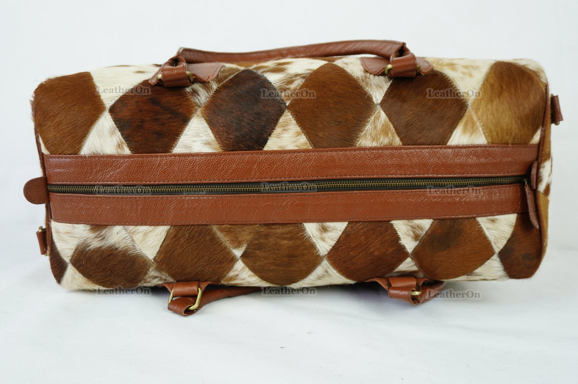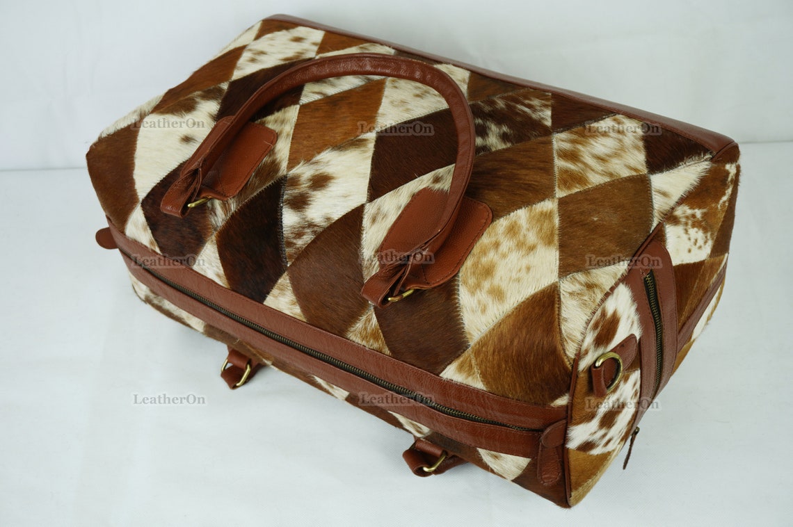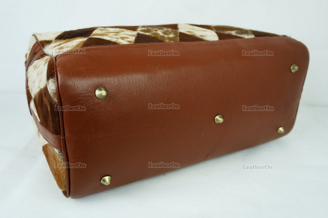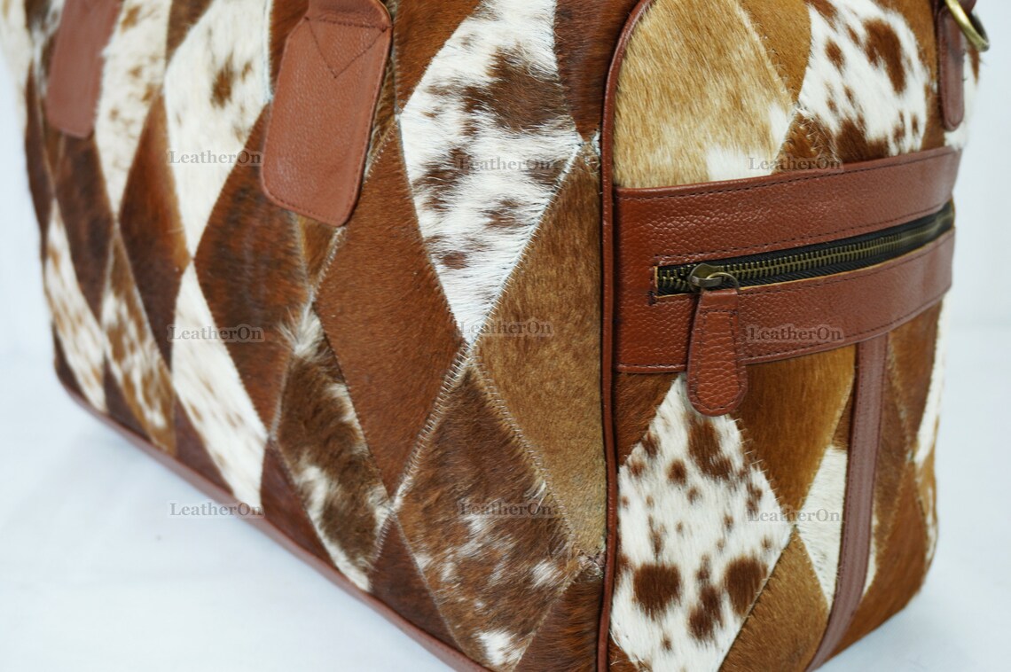 Cowhide Patchwork Duffel Bag | Natural Cowhide Duffel Bag | Hair-On-Leather Travel Bag | Cowhide Luggage Bag | Handmade Duffel Bag | DB93