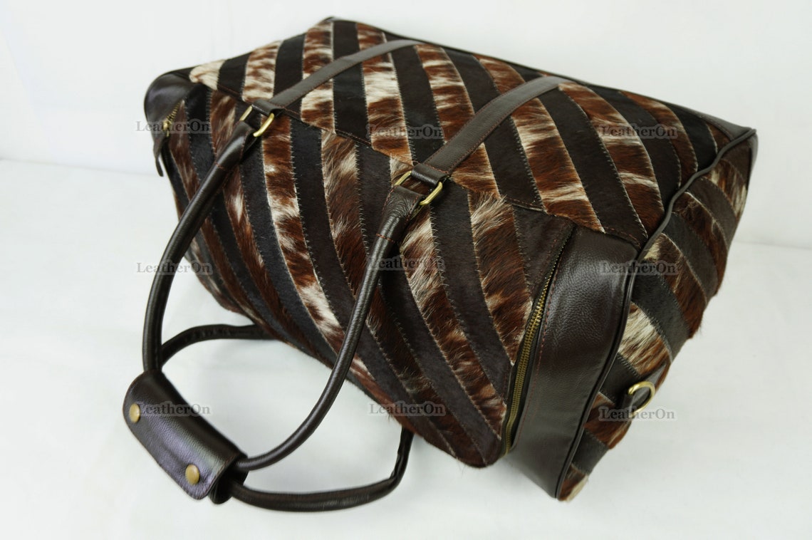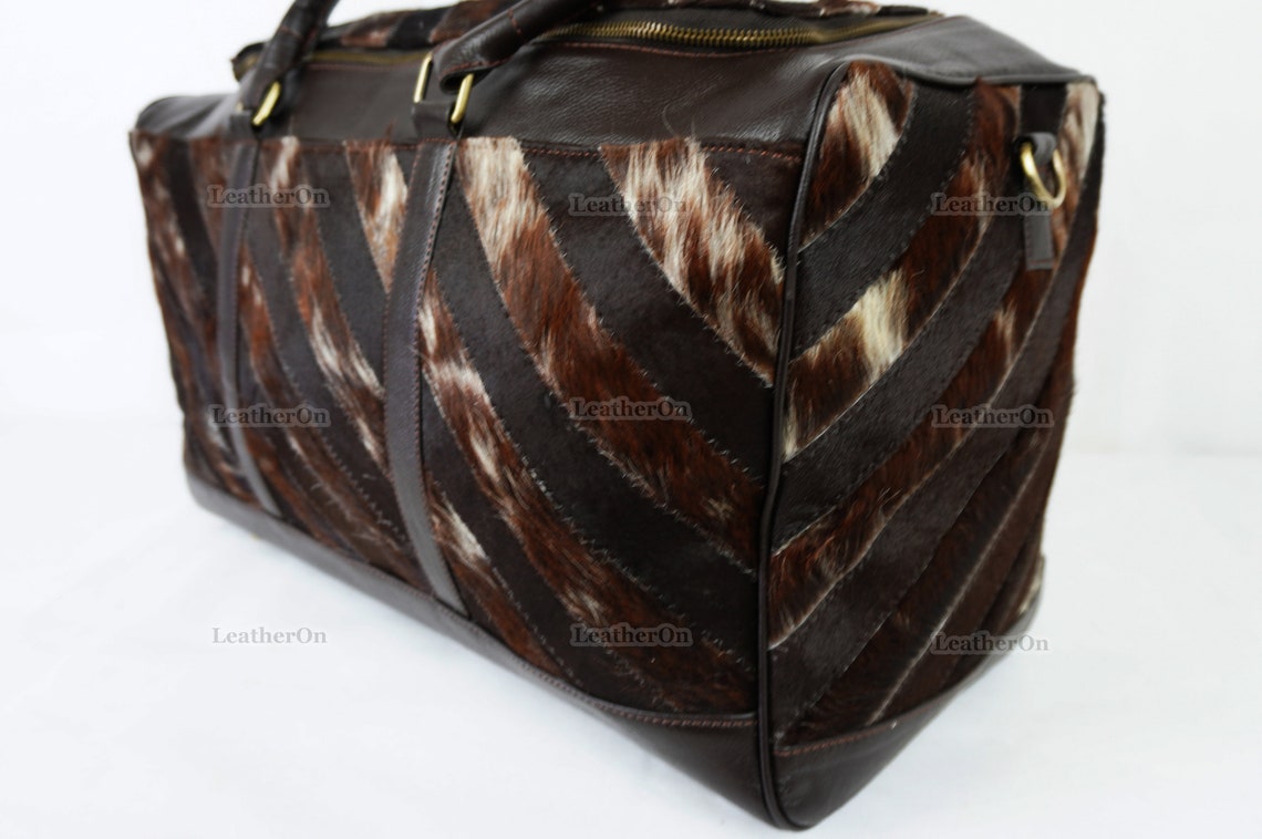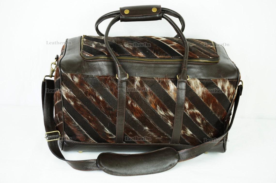 Large Duffel Bag!! Cowhide Patchwork Duffel Bag | Hair-On-Leather Travel Bag | Cow Skin Luggage Bag | Handmade Cowhide Duffel Bag | DB103