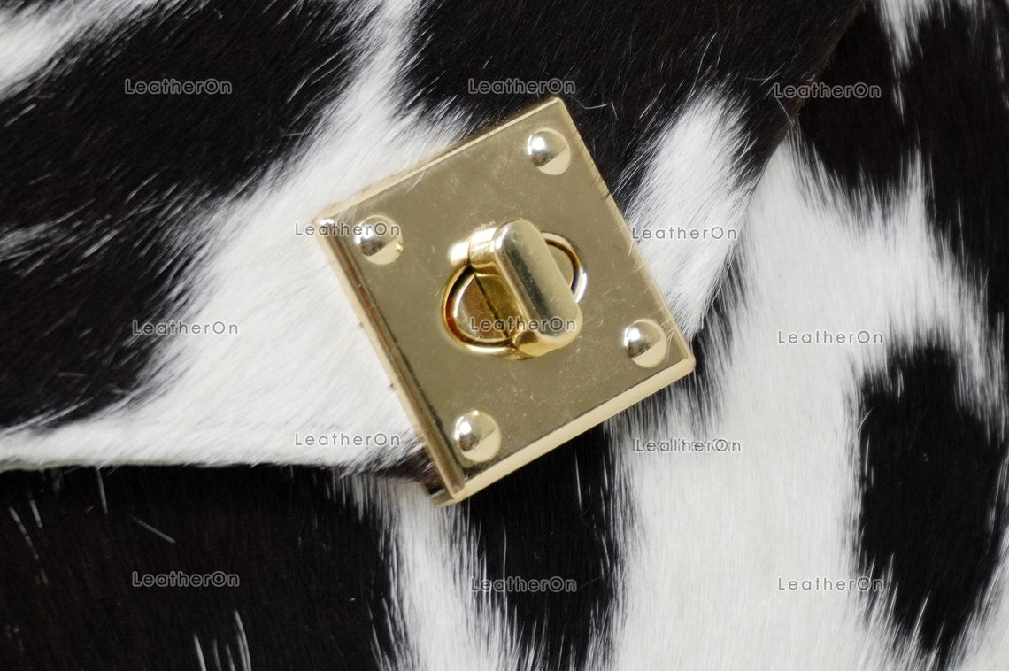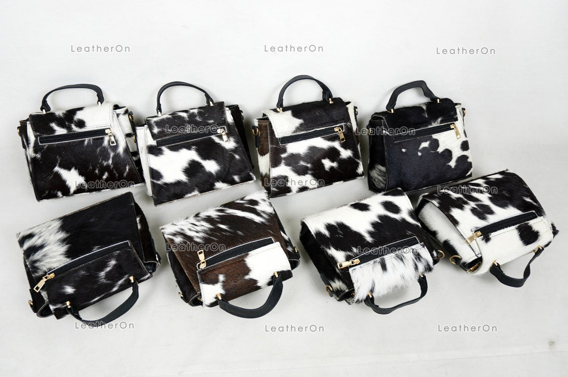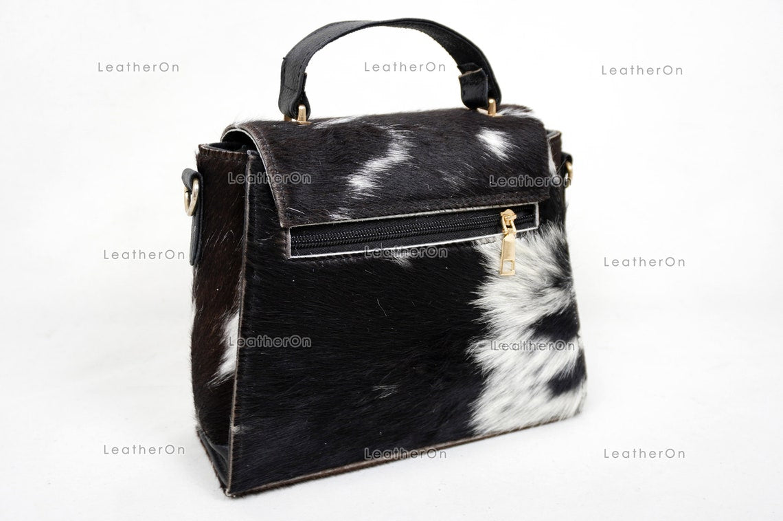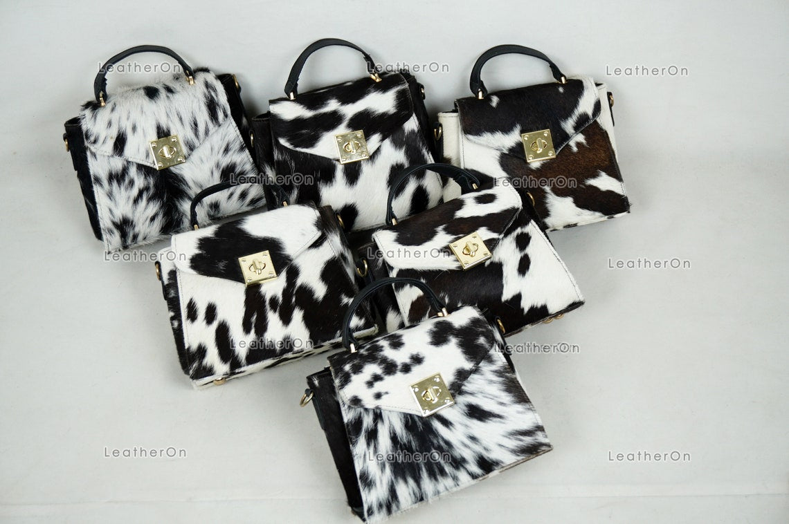 Cowhide Mini Hand Bag with Strap | 100% Natural Cowhide Top Handle Bag | Real Hair On Cowhide Leather Ladies Bag | Cow Skin Small Hand Bag
