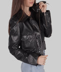 Stay warm and stylish this winter with our premium women's leather jacket, expertly crafted from genuine leather. Inspired by classic biker jackets, this coat-style design combines timeless elegance with edgy sophistication.