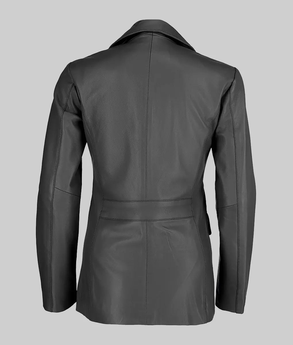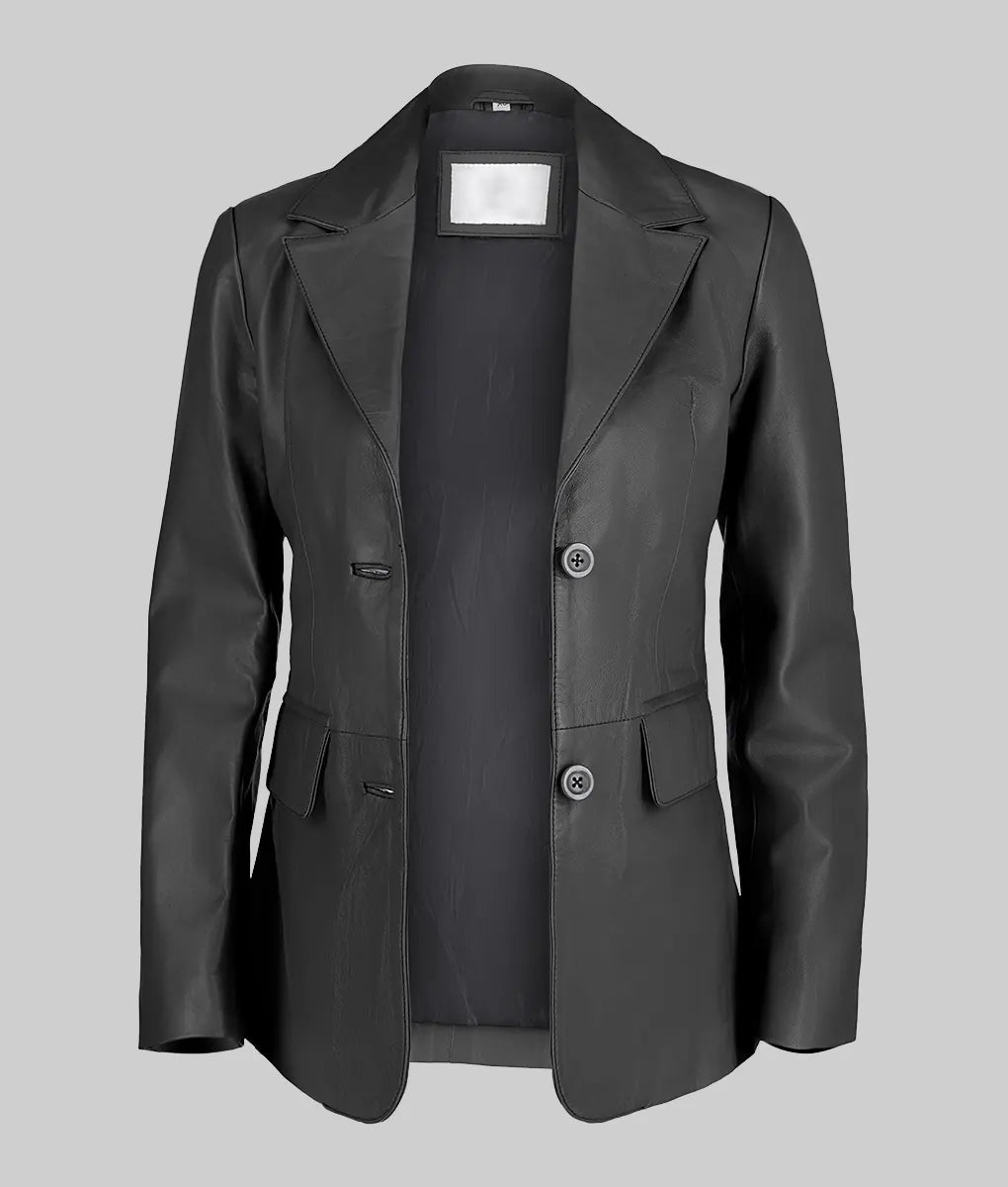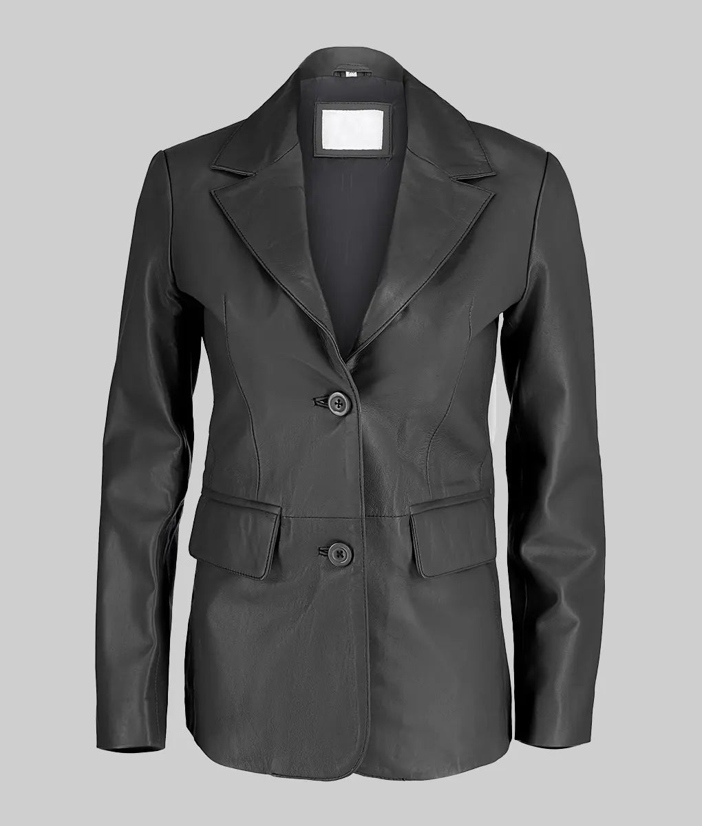 Women Genuine Leather Blazer Jacket, Female's Maroon Two Button Leather Blazer Coat, Lapel Collar Jacket