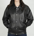 Women Oversized Bomber Leather Jacket, Female's Classic Real Lambskin Leather Jacket