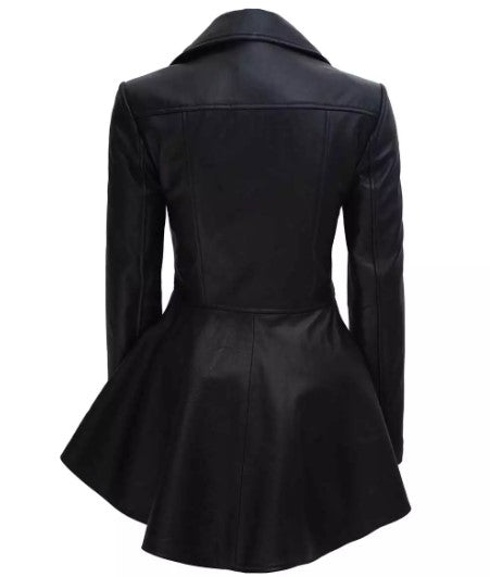 Women Peplum Leather Jacket, Female's Real Leather Jacket, Lapel Collar Peplum Leather Blazer