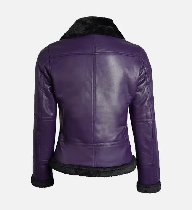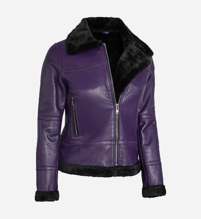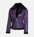 Perfect for winter outings, evening wear, or statement street style, this purple shearling leather jacket is designed for women who want warmth, luxury, and standout fashion in one timeless piece.