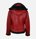 Women’s Red Shearling Hooded Leather Jacket with Belted Waist