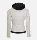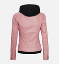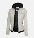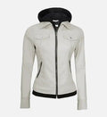 Women’s Sheepskin Leather Jacket – Off-White, Pink & Green with Removable Hood