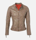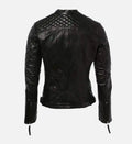 Women’s Sheepskin Short Quilted Shoulder Biker Leather Jacket