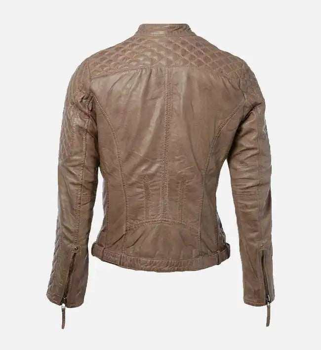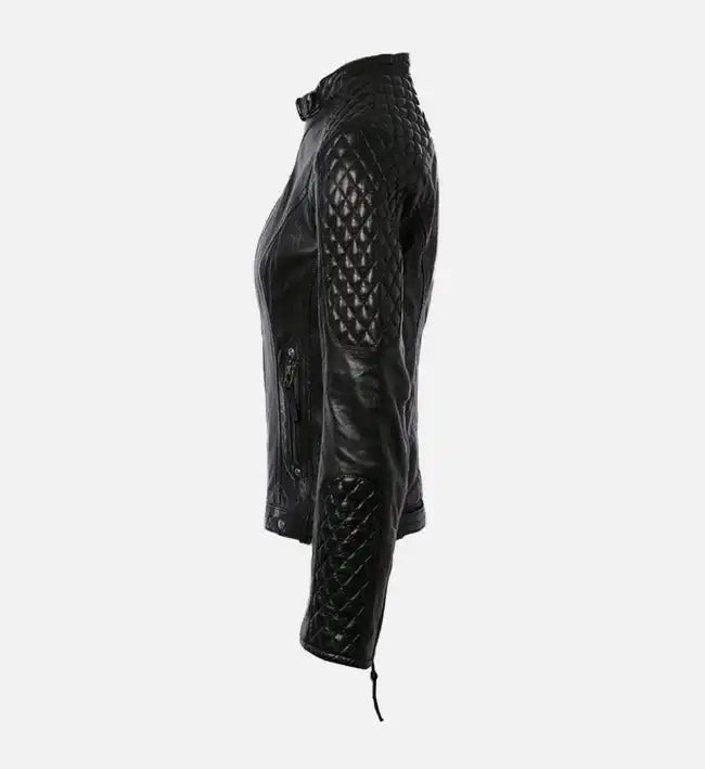 Women’s Sheepskin Leather Jacket – Quilted Shoulder & Sleeve Design