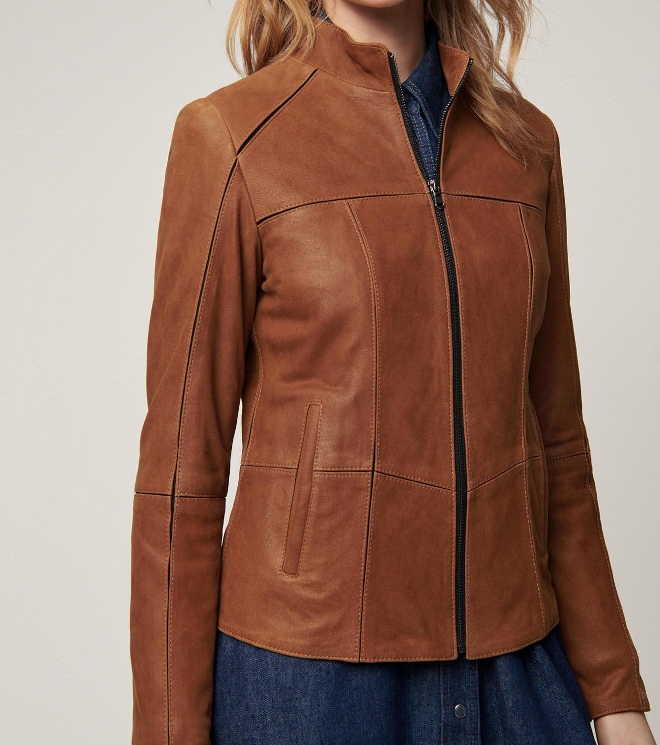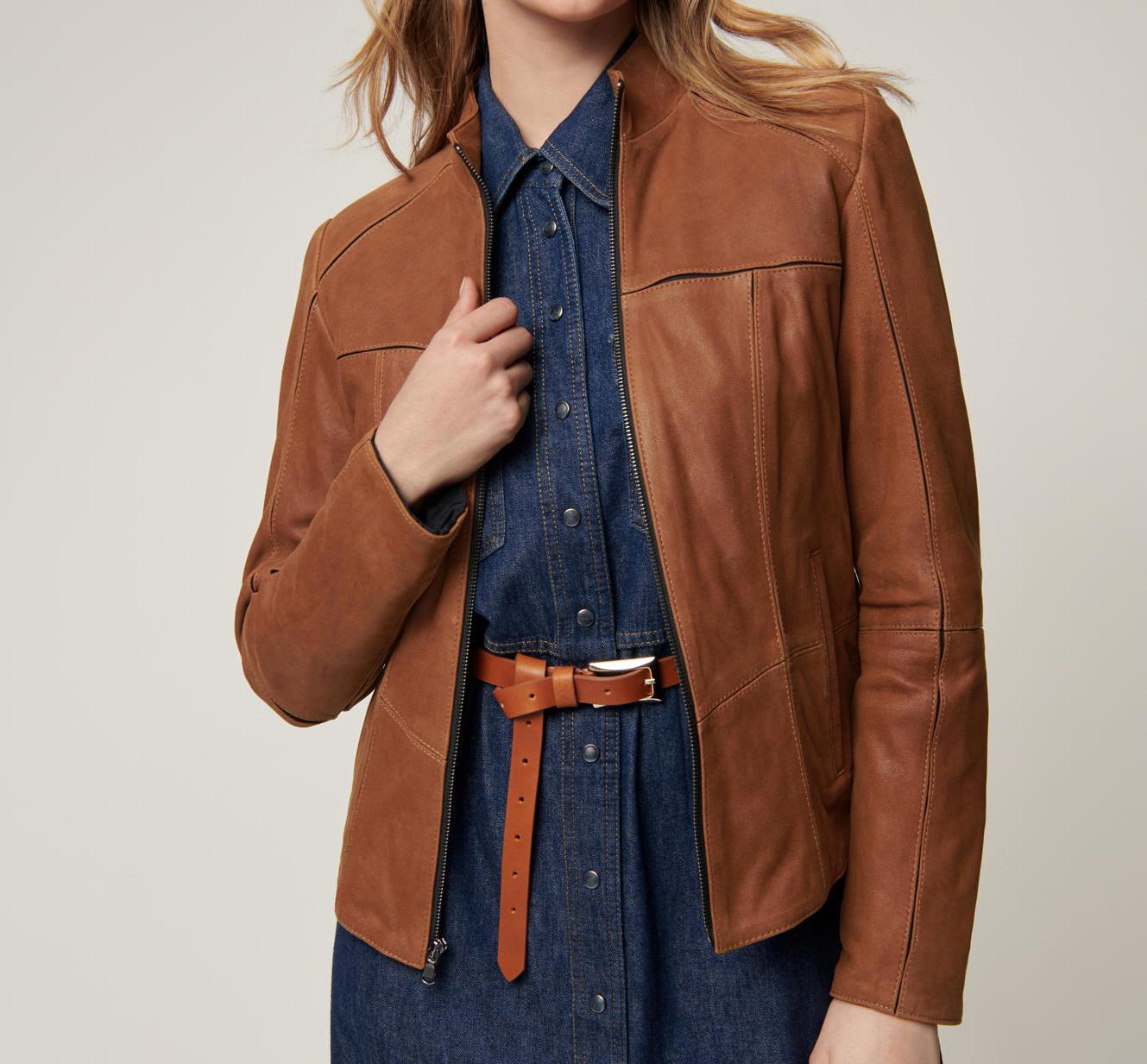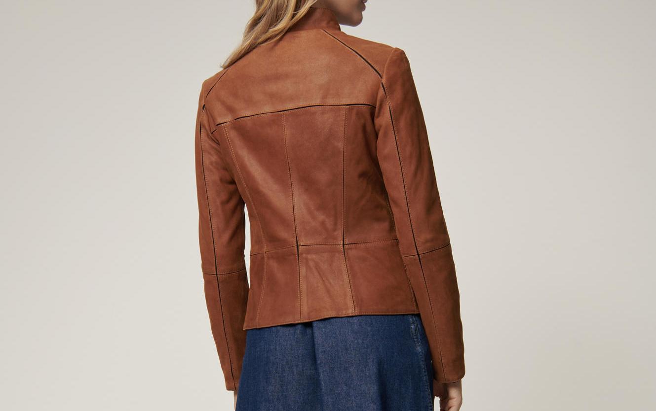 • Sporty, cropped leather jacket with stretch lining and seams