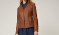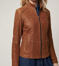 Women Unique Style Sporty Leather Jacket, Female's Leather Moto Racer Jacket with stretch lining and seams