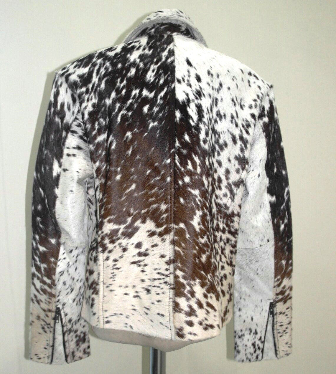 Note: It is made of unique hair-on cowhide leather, so the jacket will be very similar to as shown in pictures, because every cowhide has unique but similar color patterns.
