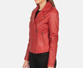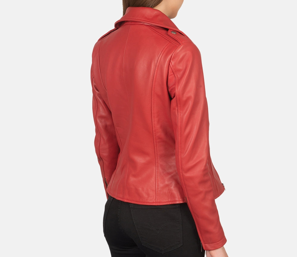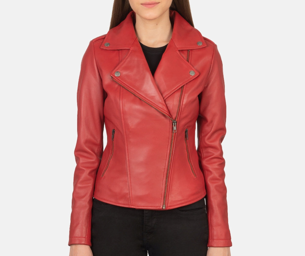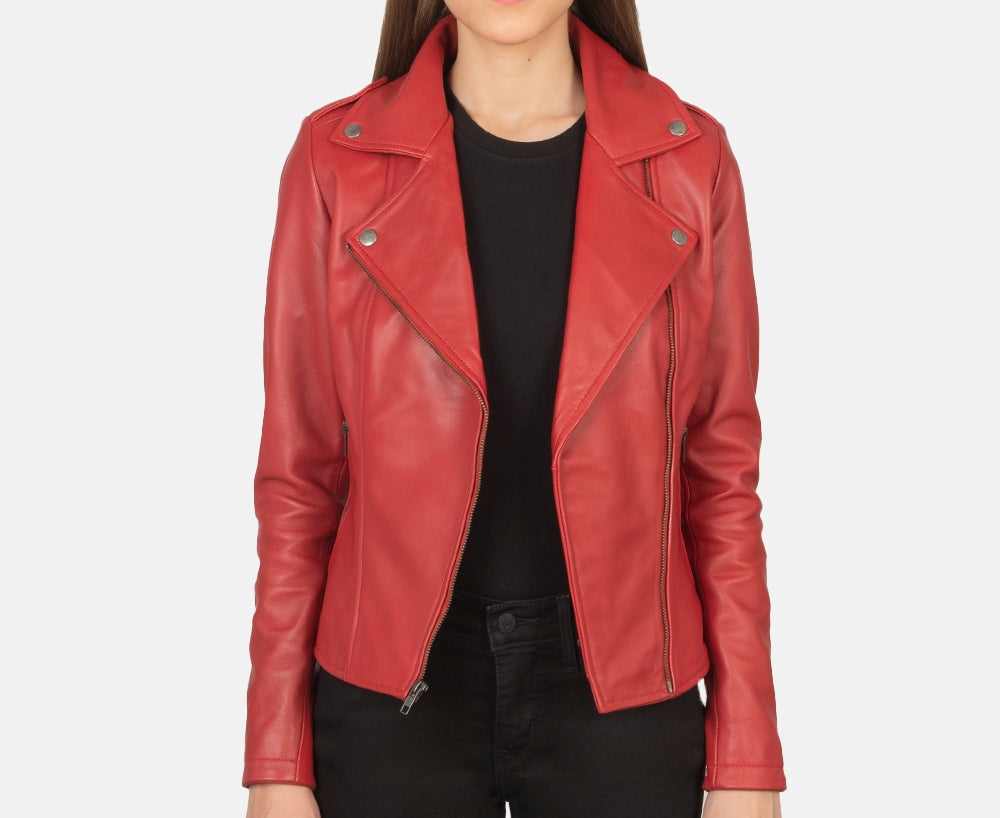 Crafted from high-quality leather, it combines durability with a sleek, modern look. The vibrant red color stands out, adding a touch of daring to any outfit, while the fitted silhouette flatters the figure, making it a versatile piece for both casual and dressed-up occasions.