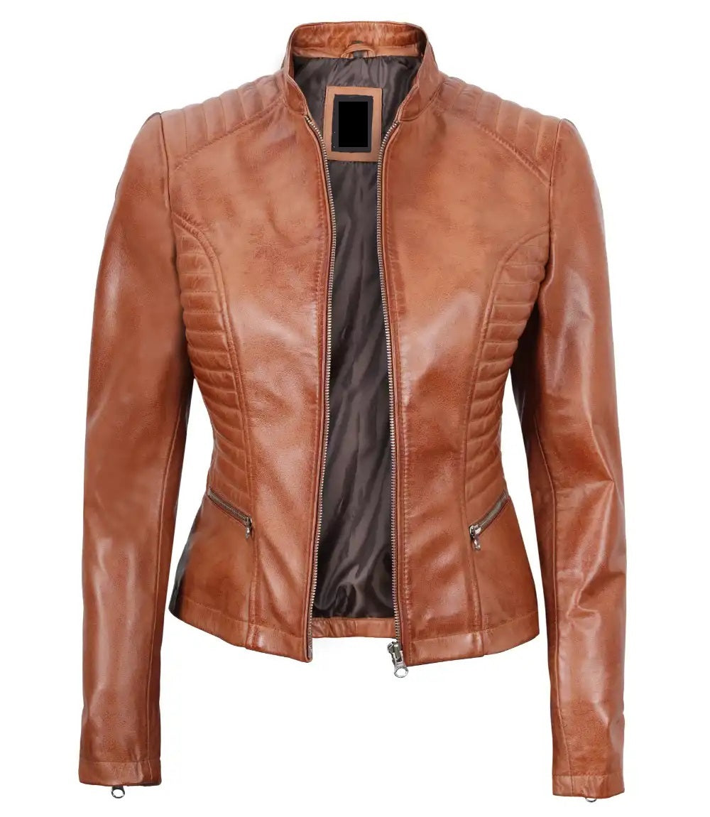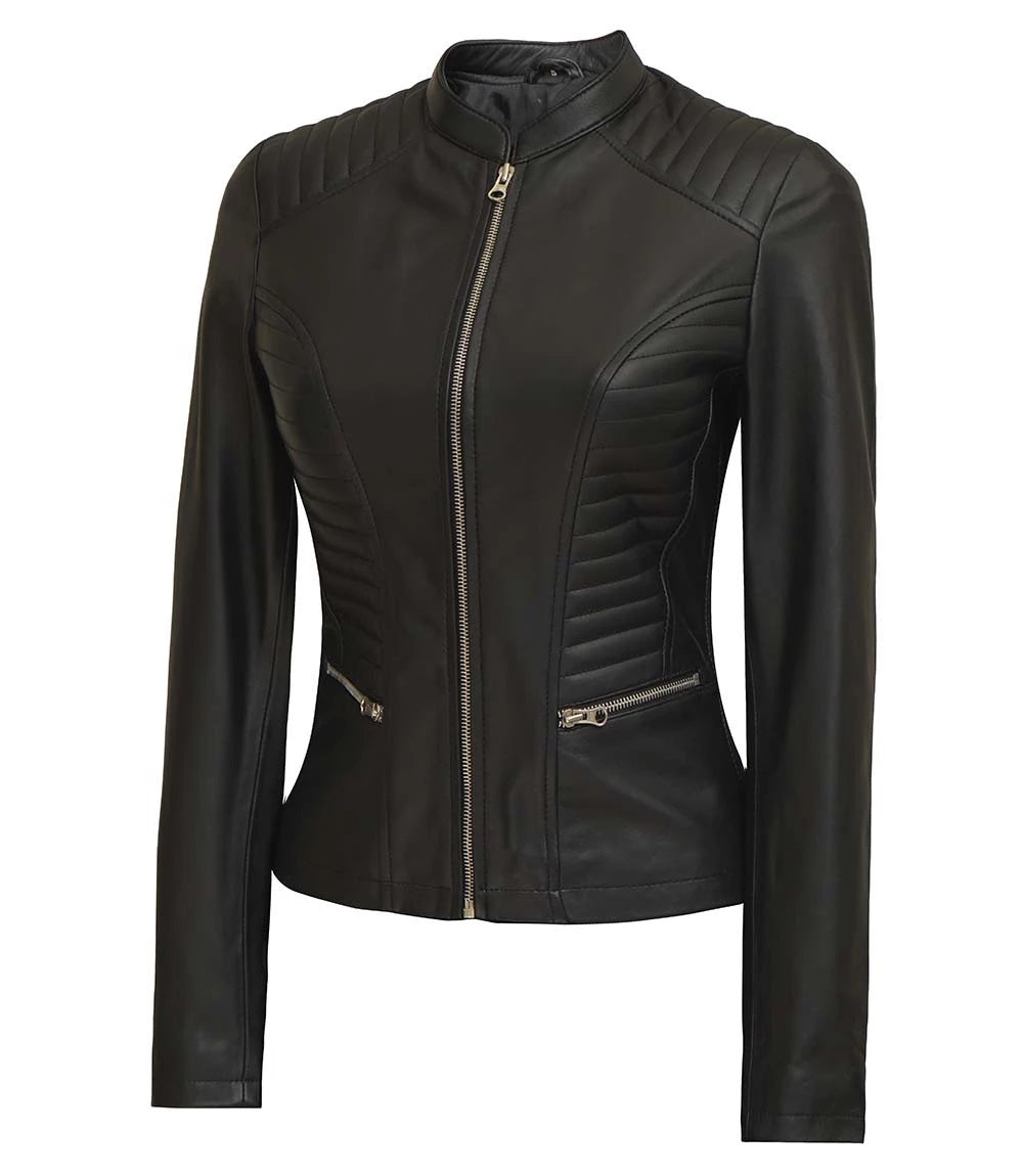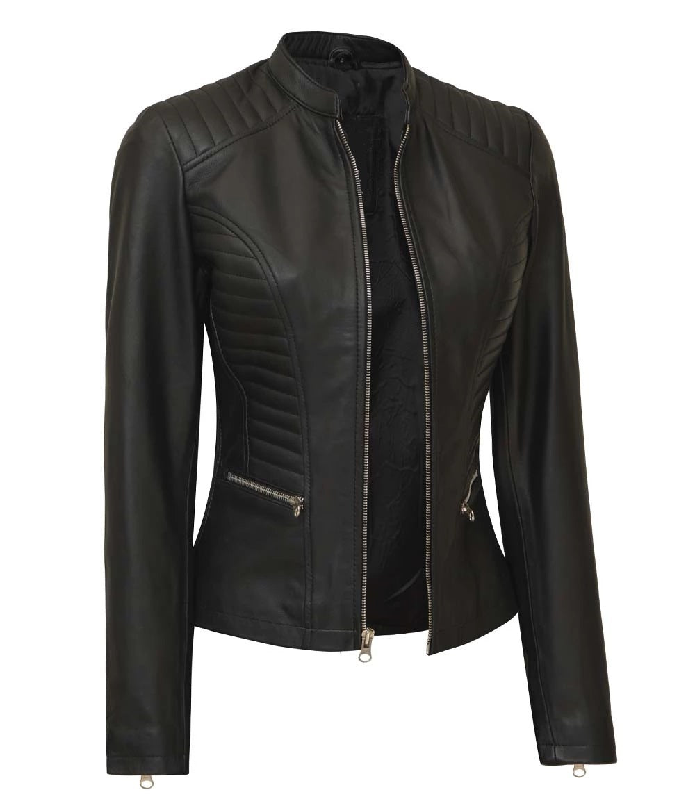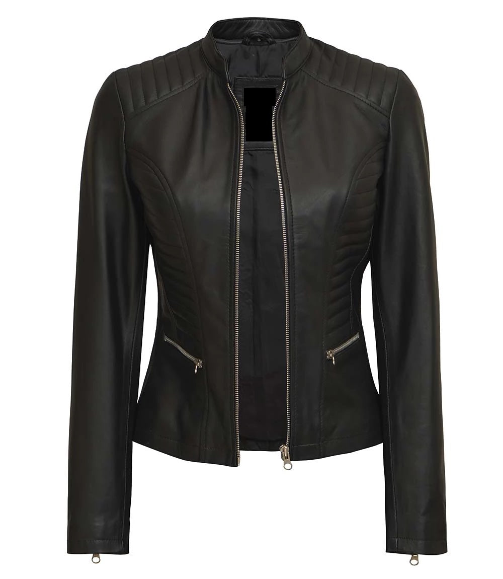 Women's Luxury Lambskin Leather Jacket - Classic Biker Style, Girls Slim Fit Cafe Racer Jacket