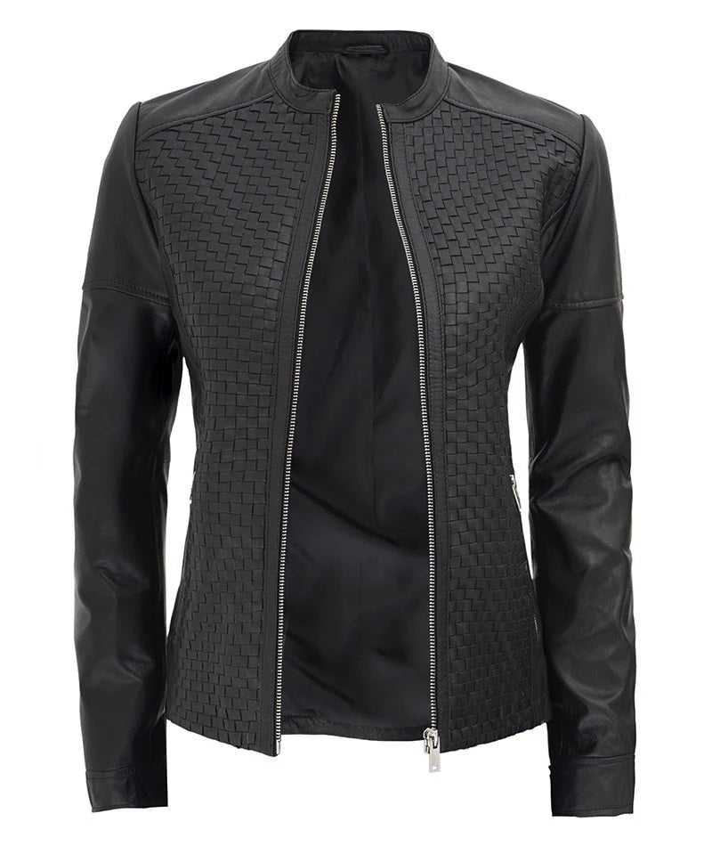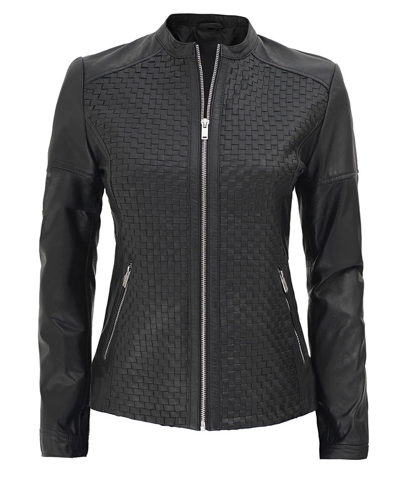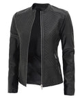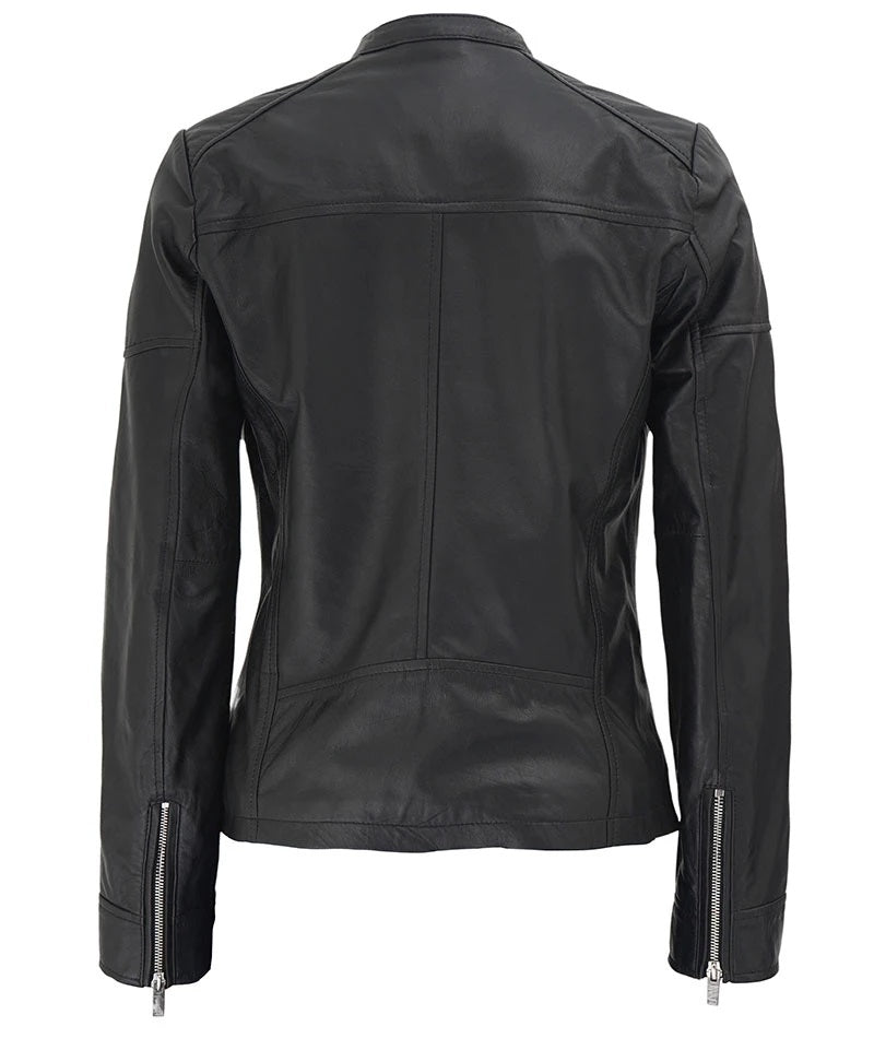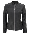 Women's Real Leather Textured Designed Jacket - Cafe Racer Style Textured Leather Jacket