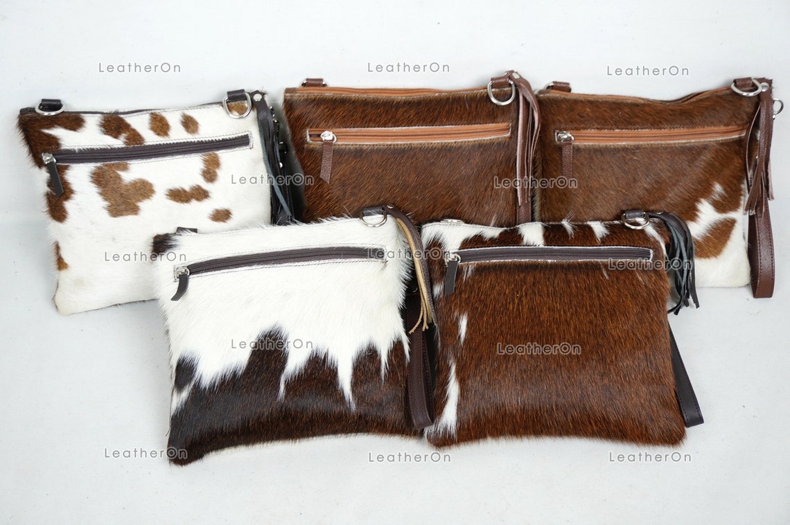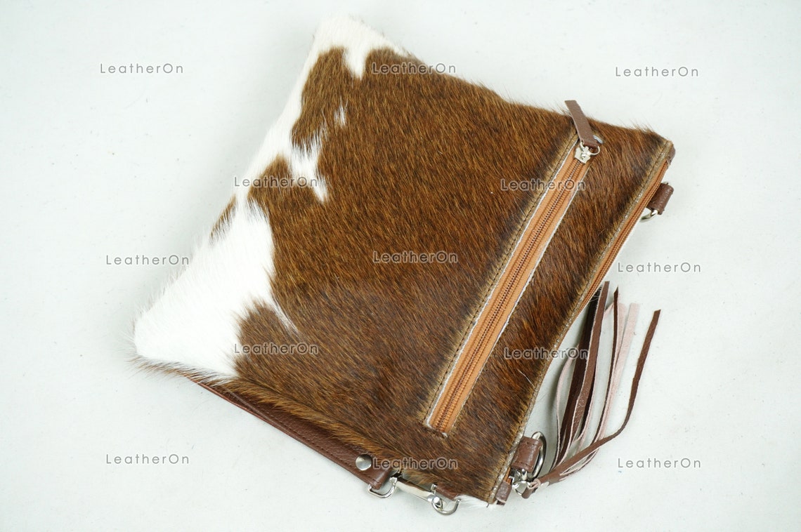 Natural Cowhide Cross body Bags with Strap | 100% Real Hair On Cowhide Leather Wristlet Bags | Genuine Cow skin Ladies Handbags | CB8